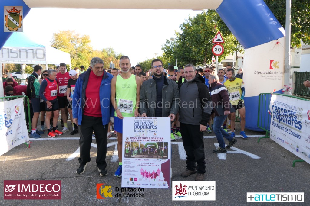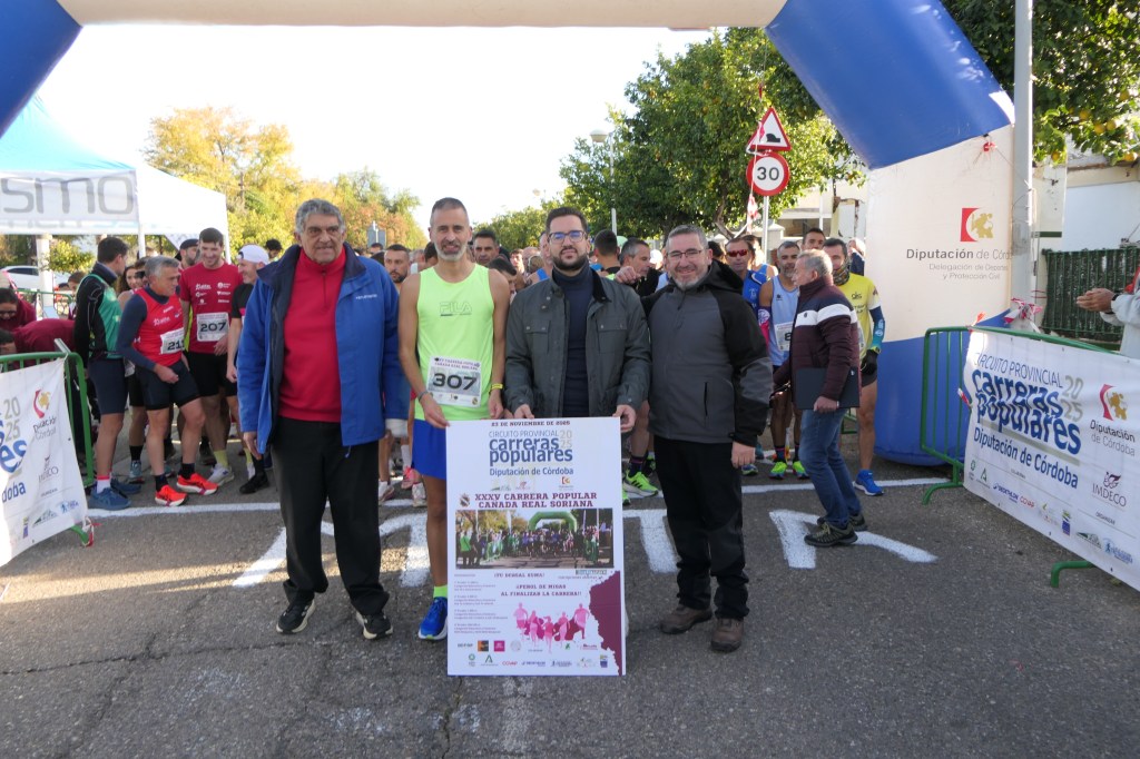 Luis Beltran/masatletismo.- Con más de trecientos participantes, se ha celebrado la XXXV Carrera Popular Cañada Real Soriana (Villarrubia), prueba del Calendario local de Cordoba capital, puntuable para el Circuito Provincial de Carreras Populares Diputación Provincial de Córdoba y organizada por la Asociación de Vecinos Cañada Real Soriana con el poyo técnico de masatletismo.