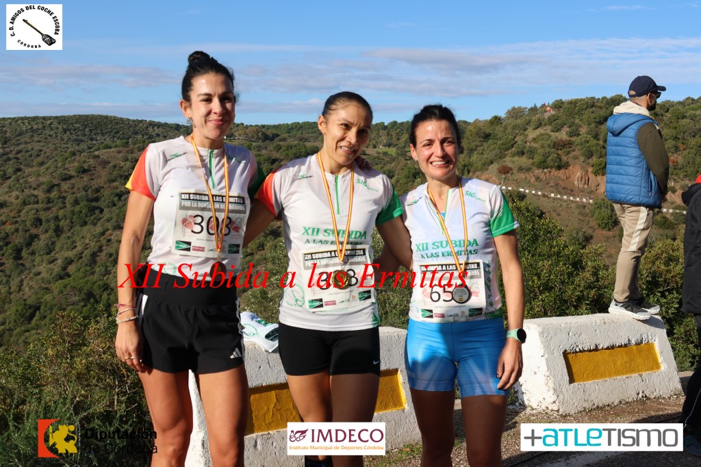 Lisa Esquivel Blanco, atleta del Club Trotasierra, ha realizado un fin de se pletórico con triunfo en el Cross El Hecho de Guadalcazar y ahora en esta edición de la Subida a las Ermitas logrando una marca de 1:02.48 Tras un emocionante duelo con Maribel López Mohedano del Trotacolonia que entro en 1:02.59. la verdad es que ambas atletas se emplearon a fondo y llegaron exhaustas a línea de meta. El tercer puesto, fue para Marta Rueda Fernández, 1:03.33. En una prueba con trece kilómetros y medio de recorrido, treinta curvas, y de un duro y selectivo recorrido, estas diferencias, pudo inclinar el triunfo para cualquiera de ella