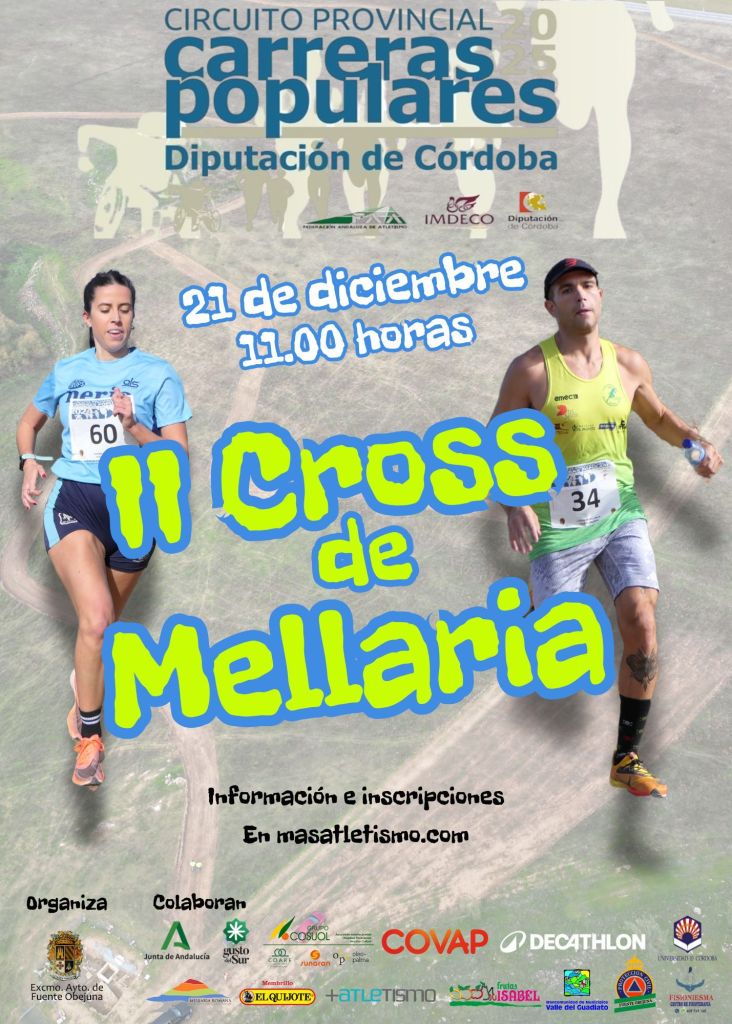 1.- El Ayuntamiento de Fuente Obejuna organiza el II Cross de Mellaría, prueba que se celebrará 2 de noviembre de 2025, en horario aproximado de 11.00 a 15.30 horas.