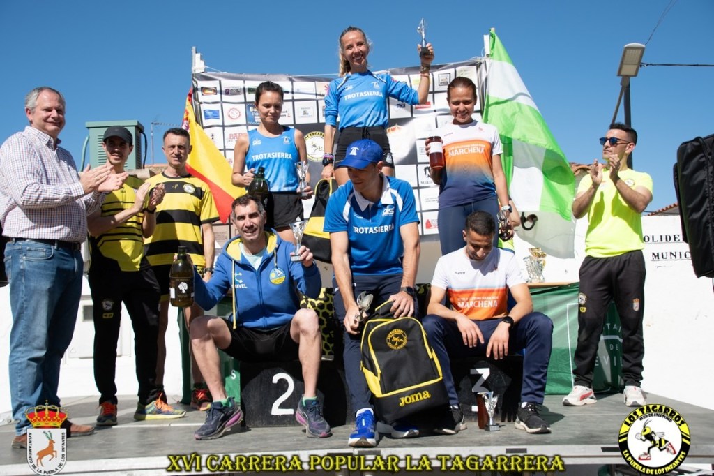 Triunfo del atleta montillano Jesús Alguacil Barba y de la atleta sevillana Carmen Gutiérrez Peña, ambos atletas del Club Trotasierra que además de este doblete se impuso como anidad on más participantes en está 16ª edición de Carrera Popular La Tagarrera (Puebla de los Infantes-Sevilla).