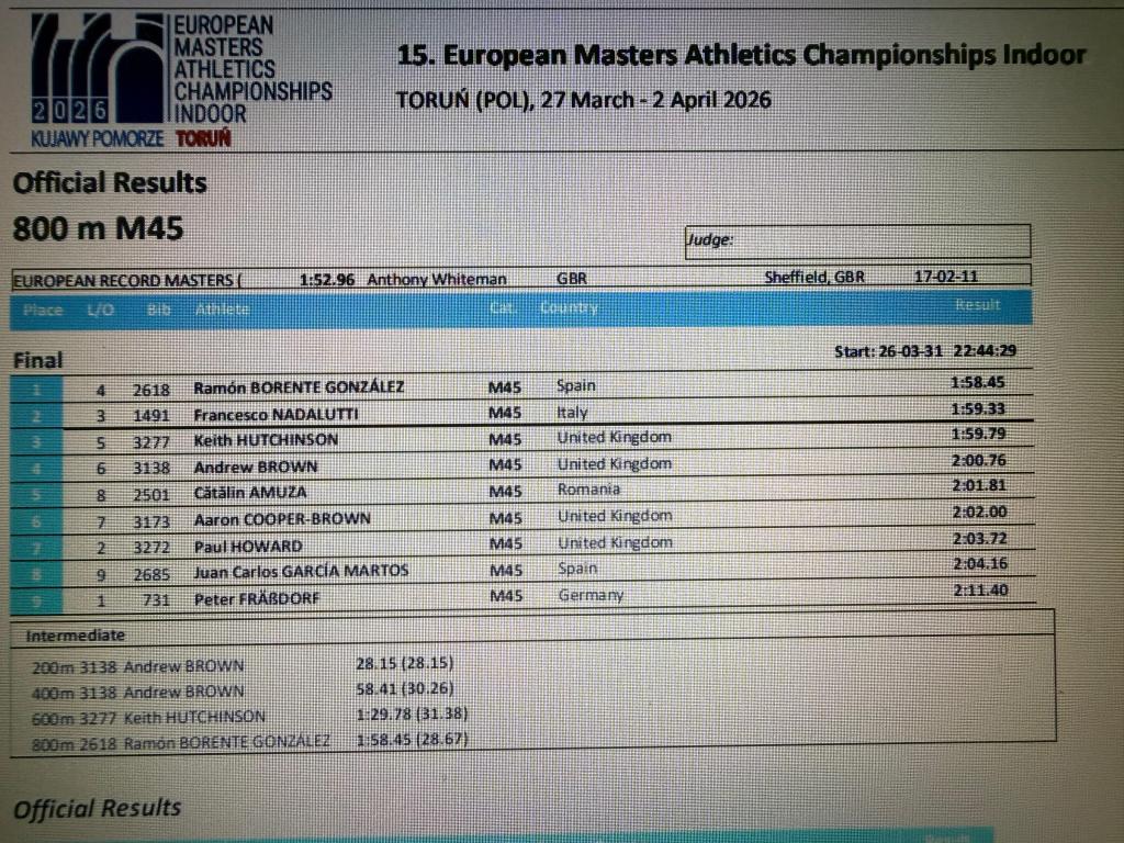 El atletismo cordobés vuelve a brillar en el panorama internacional gracias a la extraordinaria actuación de 𝐑𝐚𝐦𝐨́𝐧 𝐁𝐨𝐫𝐞𝐧𝐭𝐞 𝐆𝐨𝐧𝐳𝐚́𝐥𝐞𝐳. El deportista del club Trotasierra Hornachuelos se proclamó ayer campeón de Europa Indoor en la ciudad polaca de Torún, tras imponerse en la prueba de 800 metros con un tiempo de 1’58”45.